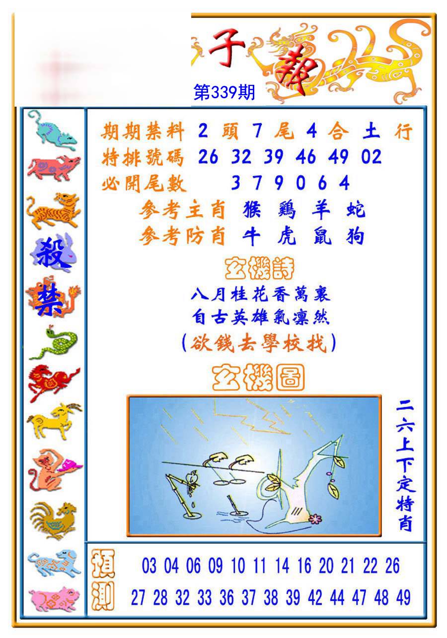 | 339期杀特三肖[马蛇兔]开龙26 |