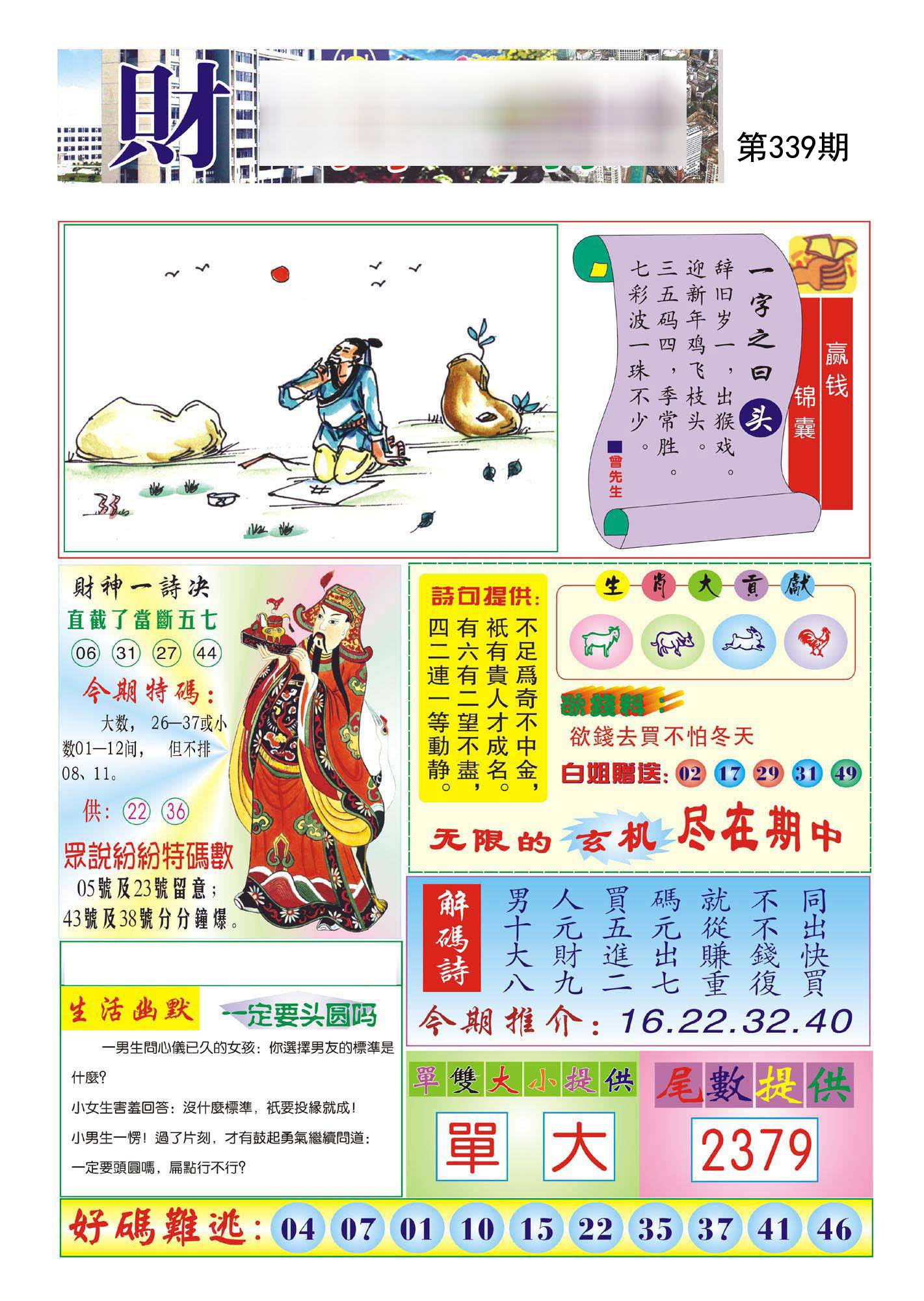 | 339期:必中五肖: 虎猪狗鼠龙 |